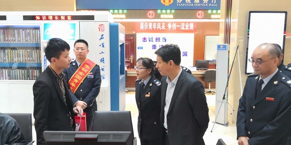 石嘴山市税务局局长王嘉栋分别到杉杉能源,埃肯碳素,石嘴山市政务大厅,大武口步行街调研了解税收宣传月开展情况以及纳税人对增值税改革意见和建议。