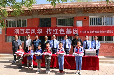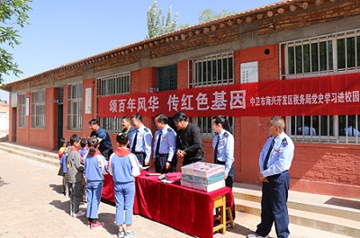 为扎实推进党史学习教育走深走实,提升为群众办实事解难题成效,在“6·1”国际儿童节来临之际,海兴开发区税务局党委组织党员干部前往结对帮扶点下套村小学开展“颂百年风华 传红色基因”党史学习进校园“四个一”活动,引导孩子们从小知史爱党、知史爱国,让红色基因根植于小学生的心中。