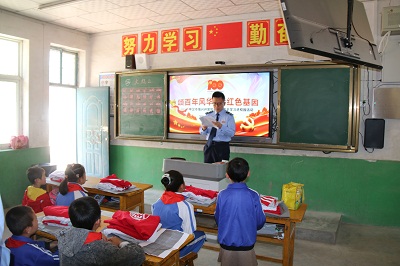 讲一组故事感人心。课堂上,党员税务干部张卫华向孩子们讲述了五个小小红军的感人故事。听了故事,三年级的学生马慧说:“税务哥哥讲的红军的故事很感人,我也要向英雄先进榜样学习,养成良好的行为习惯,努力学习,做一名优秀的共产主义接班人”。