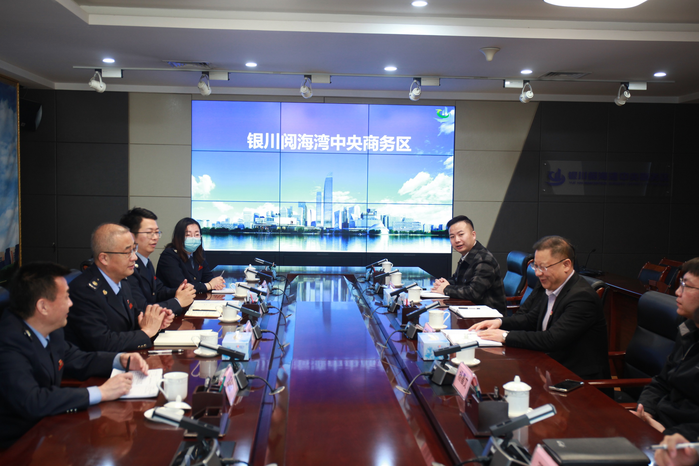 卢震桓与银川阅海湾中央商务区党工委委员、副主任宁管记等管委会人员开展深入交流,宁管记对招商引资企业落户制、园区内已入驻企业、项目及园区今后的规划做了详细介绍。双方围绕招商引资、“东数西算”、数字经济产业发展规划等问题进行深入交流探讨。
