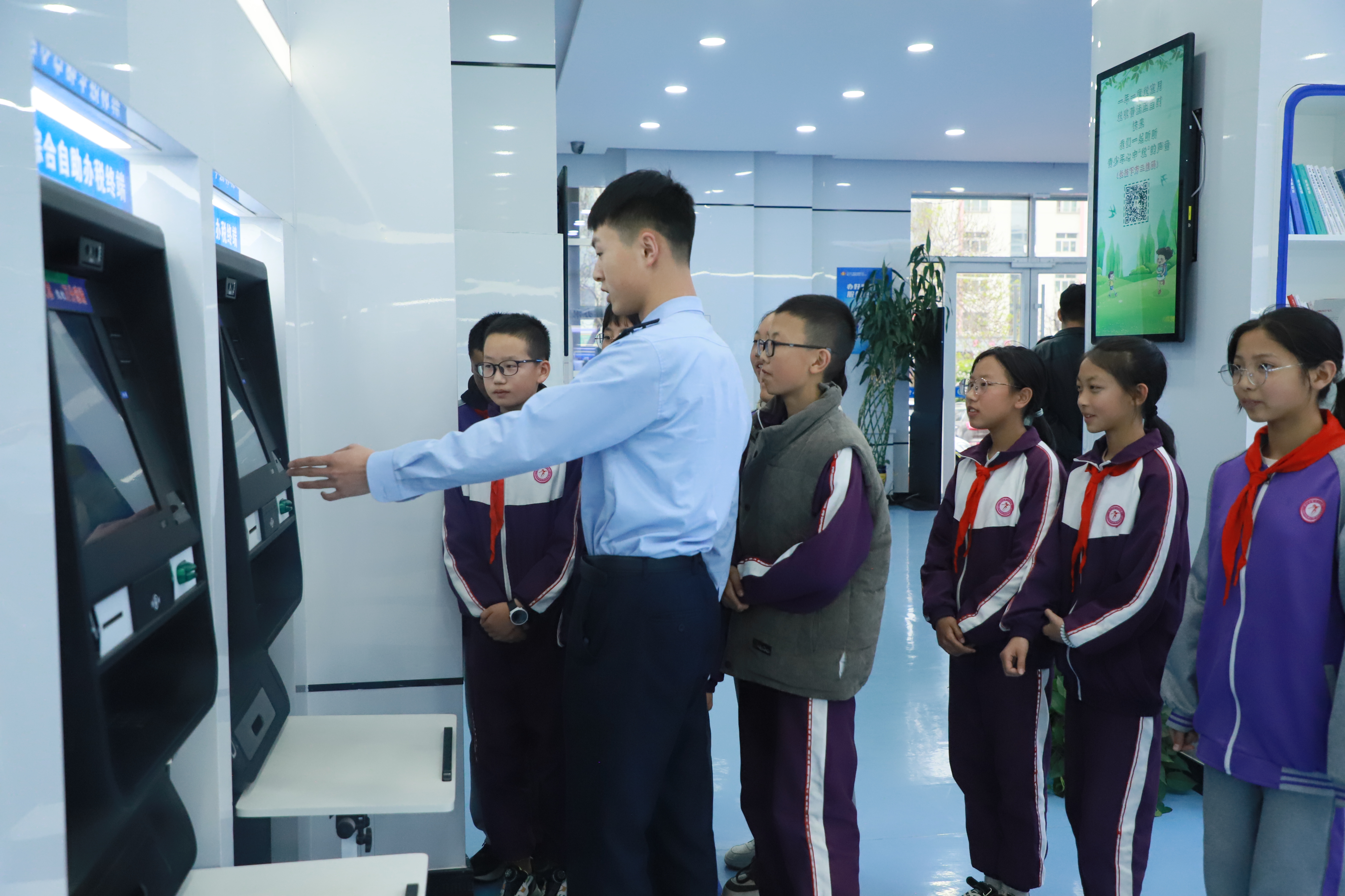 随后,15名小学生走进原州区智慧办税服务厅,税务人员通过分区功能讲解、看办税缴费流程等方式,让同学们对办税服务厅的功能和办税缴费流程有了更加直观的了解,在智能机器人带领下,同学们还沉浸式体验了“智慧办税”“非接触式办税”新模式,感受到了现代化智能办税的便捷。在场的同学们纷纷表示:“原来办税服务厅是这么工作的,回去以后,我也可以给爸爸妈妈当小老师帮他们办理业务了。”