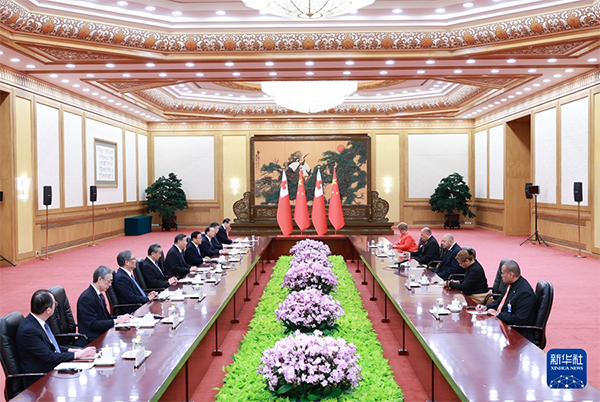 会见后,两国元首共同见证签署经贸、医疗、教育、发展等领域多份合作文件。