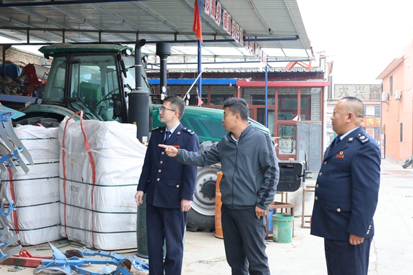 近日,国家税务总局盐池县税务局干部走进盐池县鑫兴农机作业有限公司,了解企业经营情况,解答企业涉税难题,为助力秋收贡献税务力量。(图/文 李佳)