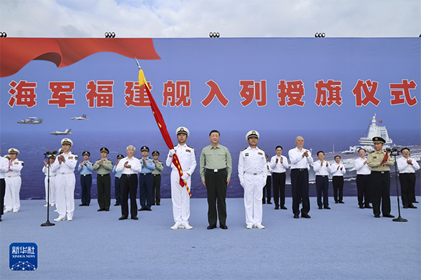 新华社三亚11月7日电(记者梅常伟)我国第一艘电磁弹射型航空母舰福建舰入列授旗仪式5日在海南三亚某军港举行。中共中央总书记、国家主席、中央军委主席习近平出席入列授旗仪式并登舰视察。