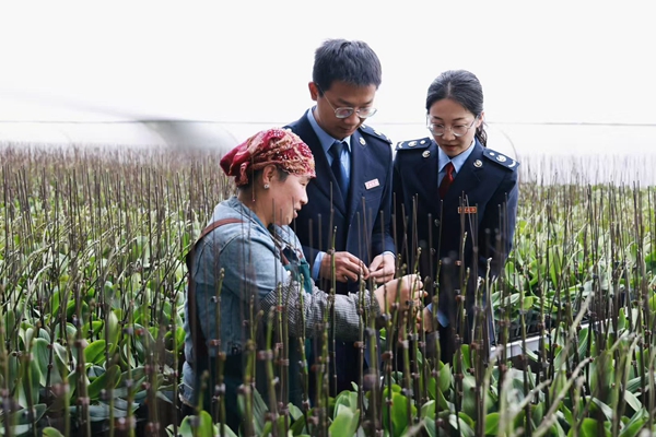 近日,兴庆区税务局干部职工组团走进玉松旺蝴蝶兰花卉基地。大棚内花香馥郁,税务干部们围在花农和企业负责人身旁,用唠家常的亲切口吻、直白易懂的语言,把政策要点掰开揉碎讲清楚。从花卉种植企业所得税减半,到自产花卉免征增值税,一项项税收福利被逐个讲透、说到位。税务干部把“纸上政策”转化为企业 “真金白银”的红利,为花卉基地扩产提质注入强劲动力,以实实在在的税务担当,助力本地蝴蝶兰产业蓬勃生长,为乡村振兴添砖加瓦。(图:吴瑶/文:宋高榕)