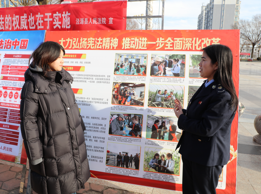 部门协同显担当,传递法治温度。与泾源县司法局、法院、检察院等部门形成普法合力,共同参与“宪法宣誓”“奏唱国歌”等集体环节,同步开展联合法律咨询服务,针对部分群众提出的企业用工纠纷、宅基地确权等复杂问题,采取“专人对接+部门联动”模式,现场协调相关单位提供专业解答,切实做到“群众疑问当场解、法治服务不断线”。此外,还组织税务干部深入周边商铺、社区,延伸开展“入户普法”,以“案例讲法”的形式,结合近期查处的税收违法案例,解读宪法与《中华人民共和国税收征收管理法》的关联条款,将宪法精神传递到街头巷尾,引导纳税人缴费人树立“合法经营、诚信纳税”意识,