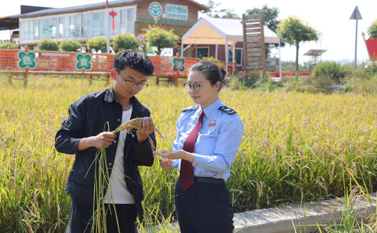 宁夏稻鱼空间乡村生态观光园位于贺兰县常信乡四十里店村,这里稻浪翻滚,金灿灿的稻穗压弯了枝头,一幅壮美的田园丰收画卷徐徐展开。税务干部深入稻田,与园区负责人进行了细致交流,详细了解今年水稻种植面积、产量、销售渠道以及稻渔综合种养模式的经济效益。