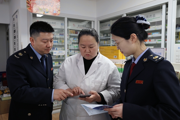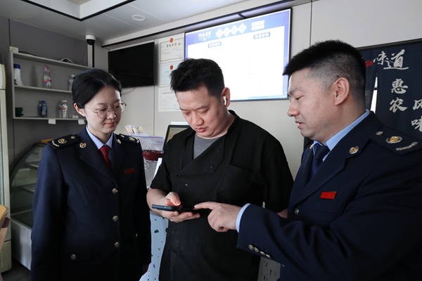 近日,金凤区税务局的工作人员走进药店、商超、餐饮店等经营场所,为个体工商户、小规模纳税人送上 “面对面”的政策讲解服务。从线上办税操作到最新税费优惠,税务干部们拿着政策手册,手把手指导经营者用手机办理业务,耐心解答发票开具、申报缴费等实际问题。在店铺里、柜台旁,一句句细致的讲解、一次次清晰的演示,让政策红利从“纸上”落到经营 “实处”。(图:李帅奇/文:张力文)