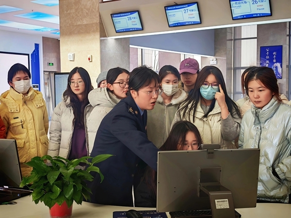 正值寒假,灵武市税务局邀请广大返乡大学生走进办税服务厅,开展沉浸式税务体验活动。税务干部带领大学生依次参观导税咨询区、自助办税区、综合窗口等功能区域,并围绕税收职能、办税服务等内容,为学子们系统介绍税务工作,邀请大学生亲身体验电子税务局发票开具、社保费缴纳、税费申报等高频业务操作,直观感受“非接触式”办税的高效便捷。同时向广大学子介绍岗位招录等政策,帮助大家全方位、多角度认识税务工作,拉近青年学子与税务工作的距离。(图文:杨恺)