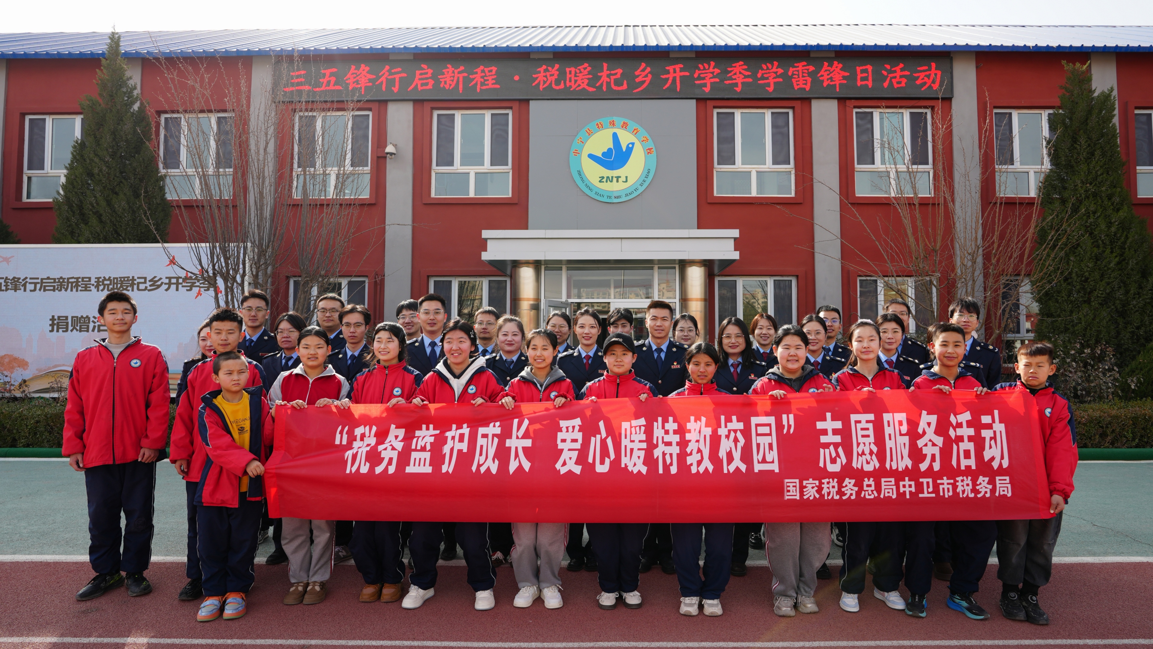 近日,中卫市税务局联合中宁县税务局组织青年志愿者和党员代表走进中宁县特殊教育学校,开展“三五锋行启新程·税暖杞乡开学季”志愿服务活动,为孩子们送去关怀与祝福。